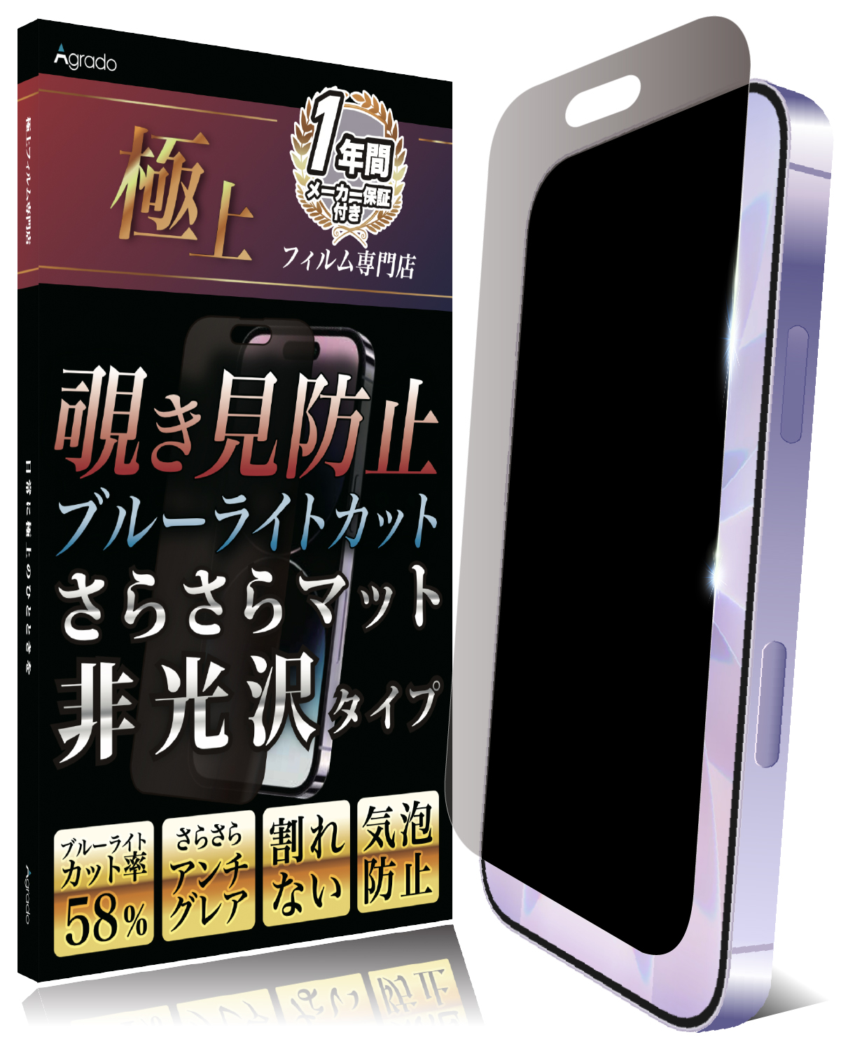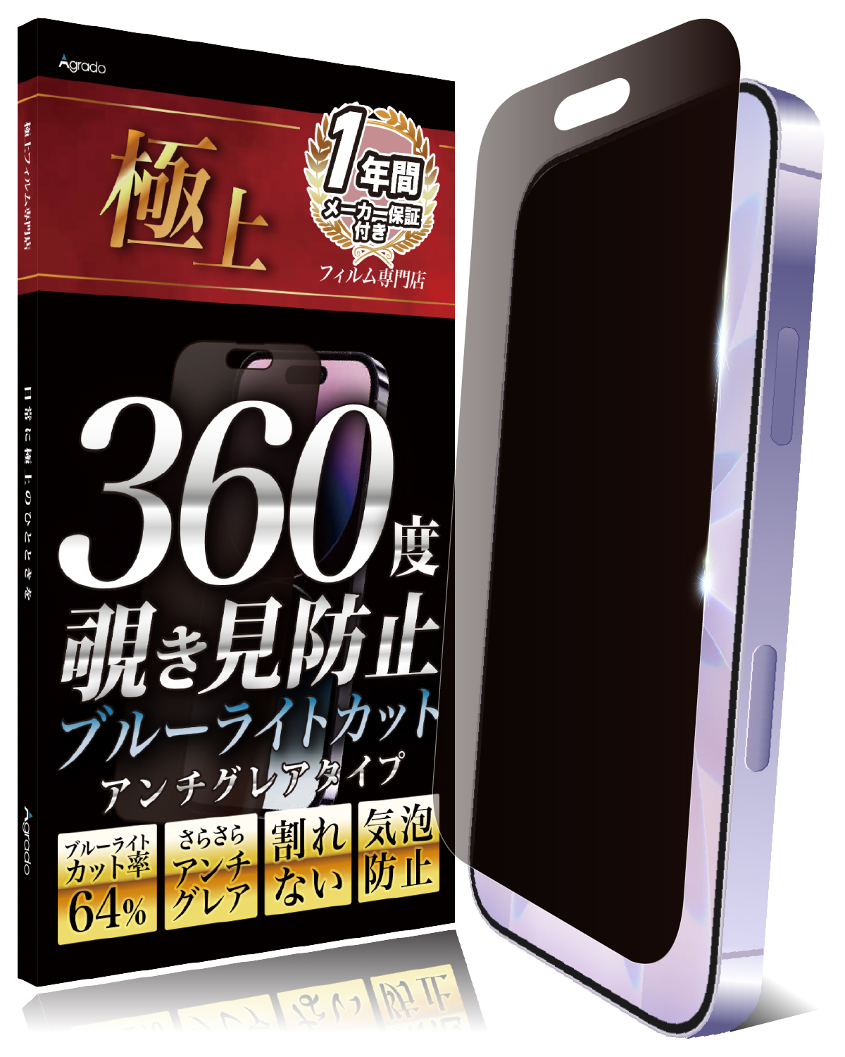 Agrado 360度 覗き見防止 フィルム iPhone14 Pro 用 いphone14Pro アンチグレア さらさら マット素材 ブルーライトカット