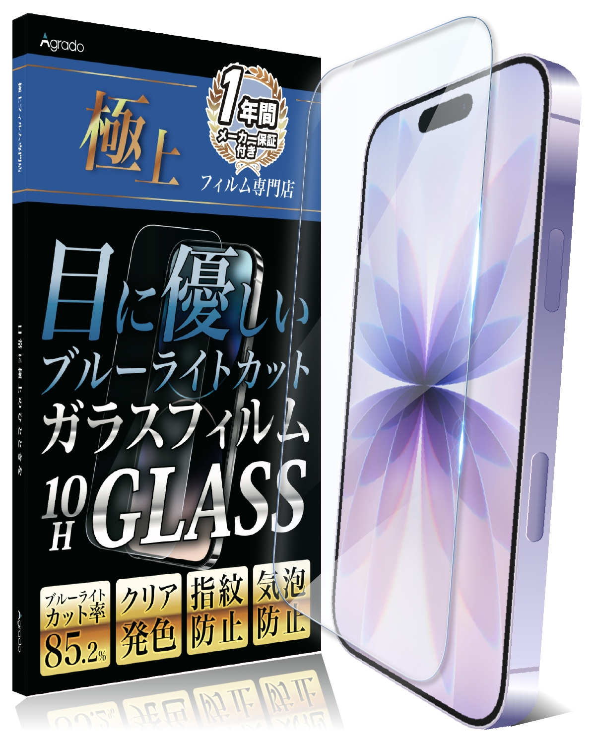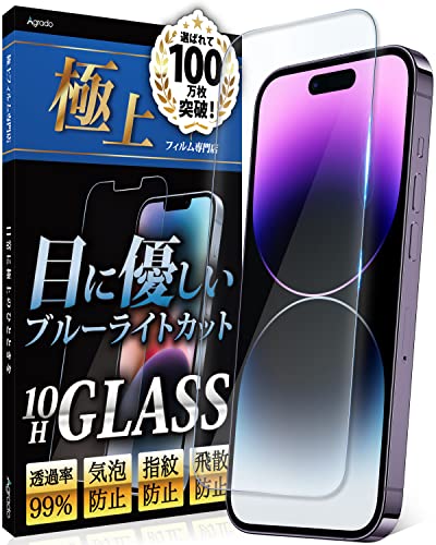 Agrado ガラスフィルム iPhone14Pro 用 ブルーライトカット 保護フィルム いphone14pro 10H 強化ガラス