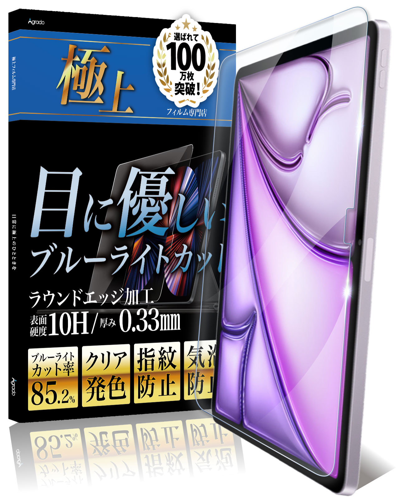 Agrado ガラスフィルム iPad Air 11インチ (2025/2024) M3 M2 用 ブルーライトカット フィルム 保護フィルム 10H 強化ガラス