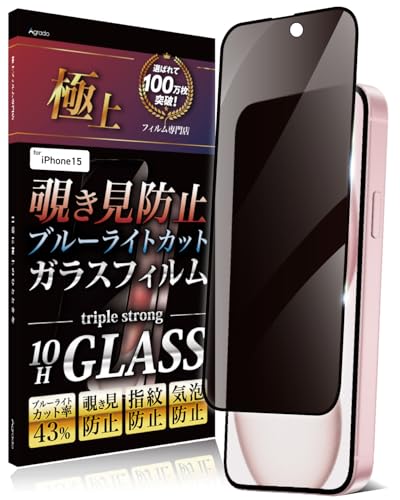 Agrado 覗き見防止 iPhone15 用 ガラスフィルム 全面保護 いphone15 10H 保護フィルム ブルーライトカット フィルム