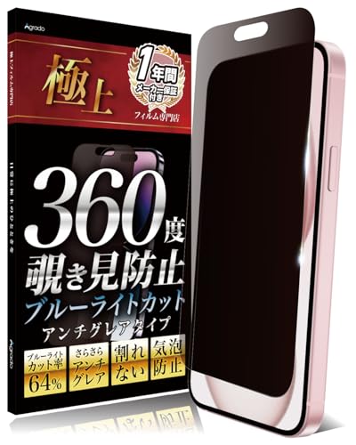 Agrado 360度 覗き見防止 フィルム iPhone16 用 いphone16 アンチグレア さらさら マット素材 ブルーライトカット