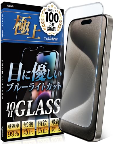 Agrado ガラスフィルム iPhone15 用 ブルーライトカット 保護フィルム いphone15 10H 強化ガラス